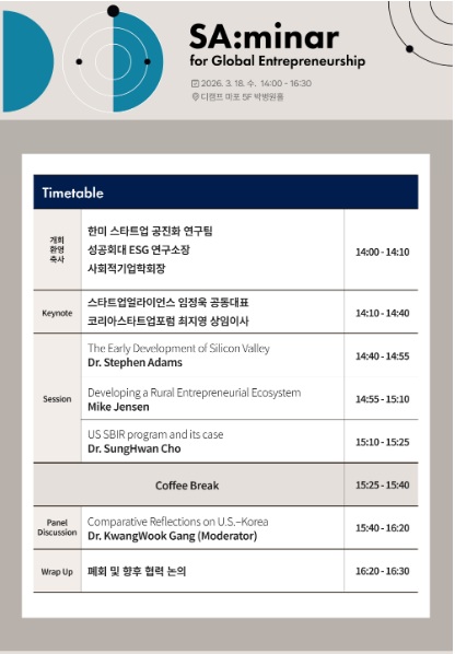 학회가 공동주최 하는 SA:minar for Global Entrepreneurship 안내